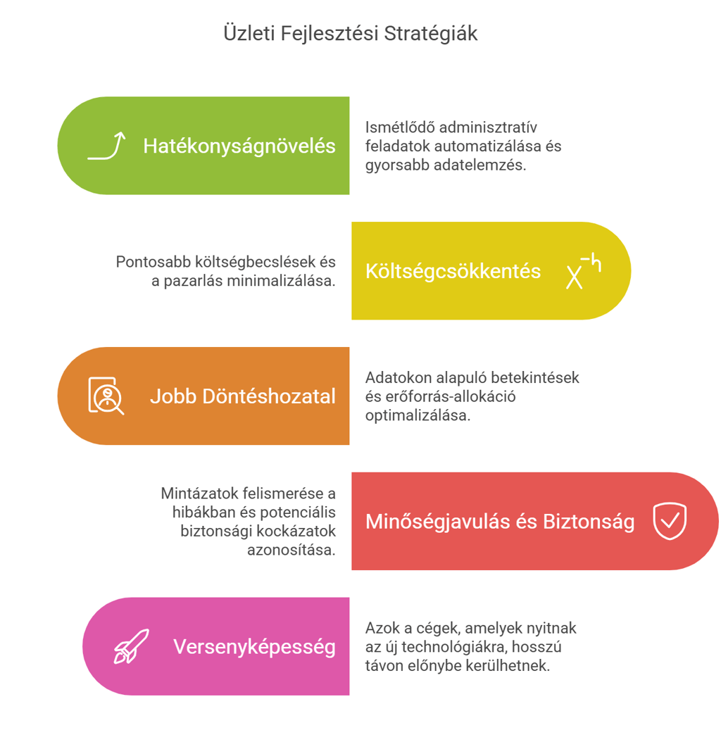 Hatékonyságnövelés: Ismétlődő adminisztratív feladatok automatizálása, gyorsabb adatelemzés.