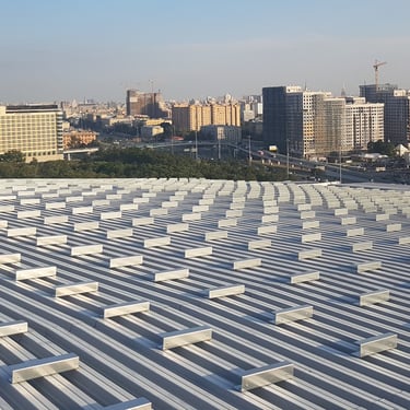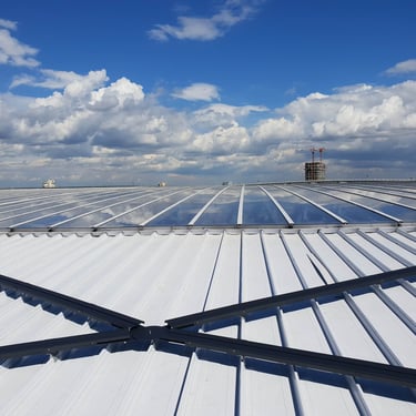The terminal building is bird-shaped, and at the client's request, it is clad with rectangular and doubly curved ALU panels, each installed on a standing seam metal roof equipped with a RIB-ROOF waterproofing system. The building's upper wing is covered with 7,520 square meters of aluminum panels, while the lower cladding covers 1,920 square meters.