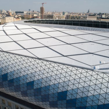The VTB Arena Park and Entertainment Complex was a unique project. This magnificent, multi-purpose stadium is home to both the Dynamo Moscow football and ice hockey teams. The playing fields for both sports are under one roof. We designed the roof, were responsible for the 3D development and manufacturing design, and played a significant role in the construction.