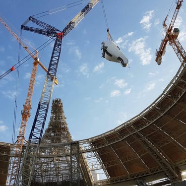 This was one of the most challenging structures we have ever worked on, as the 200-ton horse sits on a cantilevered structure. Since its completion, the horse's head has been in place. Installing the panels onto the structure was incredibly difficult, but in the end, the panel alignment and gaps were satisfactory to both the contractor and the client.